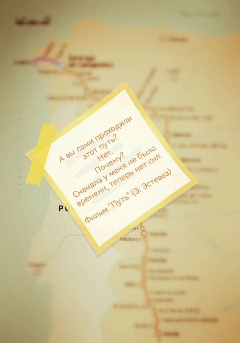 В октябре я проводила розыгрыш открытки для тех, кто угадает о моей огромной мечте... Кстати, многие люди говорят, что нельзя всем подряд рассказывать про свою мечту, что не сбудется... А вдруг наоборот? Вдруг добрые пожелания добрых людей помогут этой мечте сбыться? Моя мечта была спрятана под отрывком из фильма "Путь" Эмилио Эстевеза. Да да, моя огромная мечта именно путь - Путь святого Иакова, Camino de Santiago. Причём спрятан (размыт) один из длинных маршрутов. А я хочу пройти, для начала, тот, что покороче. Однако, речь сейчас не о моей мечте. А именно об этом фильме. Мне всегда нравилось смотреть фильмы, где снимается сам Эмилио - "Молодые стрелки", самая первая "Миссия невыполнима". Однако, оказалось, что господин актёр ещё и отличный режиссёр. И он снял отличный фильм "Путь", вышедший на экраны в 2010м году. Но как-то не на все экраны он попал. Да и найти его на просторах интернета с более менее приличной озвучкой довольно сложно. Я умудрилась даже найти полный дубляж на и