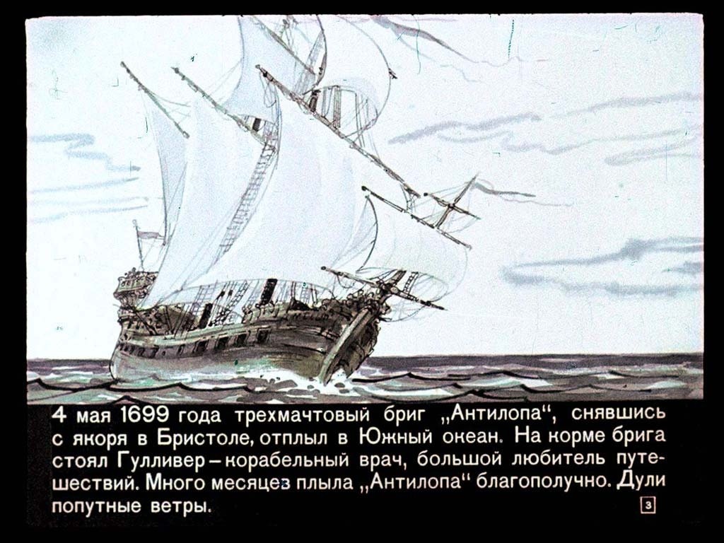 Как известно, самый издаваемый в России перевод "Путешествий Гулливера" начинается поэтичной фразой: «Трехмачтовый бриг «Антилопа» уходил в Южный океан…».