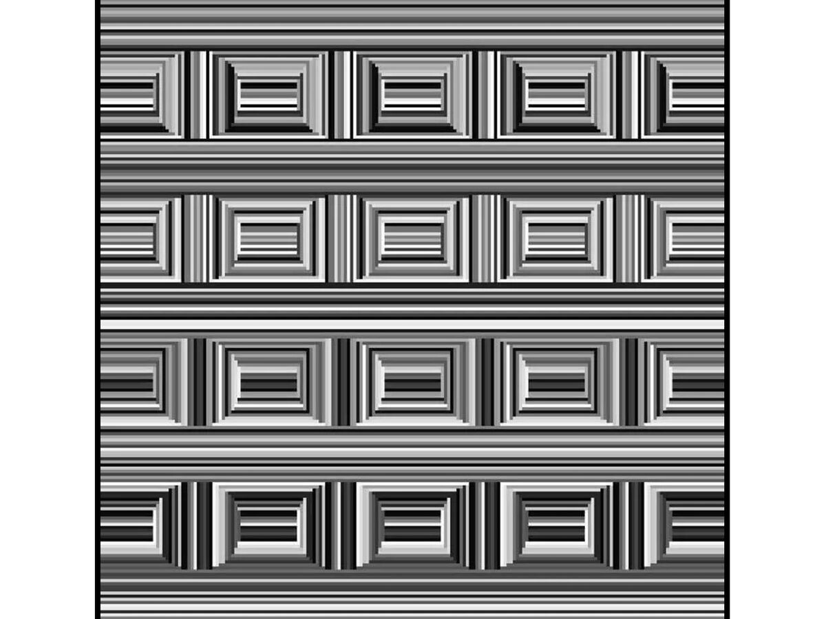 ИЛЛЮЗИЯ ШЕПАРДА, КРУГИ ТИТЧЕНЕРА, ИЛЛЮЗИЯ ЭББИНГАУЗА, ИЛЛЮЗИЯ ДЕЛЬБЁФА, ИЛЛЮЗИЯ ОППЕЛЯ - КУНДТА, ИЛЛЮЗИЯ ВУНДТА, ИЛЛЮЗИЯ ГЕРИНГА, ИЛЛЮЗИЯ ОРБИСОНА, СПИРАЛЬ ФРЕЗЕРА, ИЛЛЮЗИЯ БОЛДУИНА, ИЛЛЮЗИЯ ПЕРЕЛЬМАНА, ИЛЛЮЗИЯ МАНКЕРА - УАЙТА, ИЛЛЮЗИЯ КОРНСВИТА, ИЛЛЮЗИЯ ШЕВРЁЛЯ, ПОЛОСЫ МАХА, ИЛЛЮЗИЯ ПАКМАНА, ИЛЛЮЗИЯ ПОНЦО, ЛЕСТНИЦА ШРЁДЕРА, ИЛЛЮЗИЯ АКИОШИ КИТАОКИ, ИЛЛЮЗИЯ ЯСТРОВА, ИЛЛЮЗИЯ НИНЬО, РЕШЁТКА ГЕРМАНА... За каждым из этих эпонимов стоит чьё-то имя. А вот с ИЛЛЮЗИЕЙ КОФФЕРА не всё так просто. Вот что вы видите на этом рисунке? Лично я почему-то сразу увидел здесь множественные фрагменты филёнчатой двери. Но потом вгляделся повнимательнее... и понял, что на рисунке изображено 16 круглых дисков, прочерченных вертикальными полосами и расположенных на поле, где чередуется множество горизонтальных линий. Следующая мысль касалась того самого Коффера - какой здорово этот человек подметил, и не догадаешься с первого взгляда! Классическая иллюзия! Однако реальность меня разочаровала. Потому что к