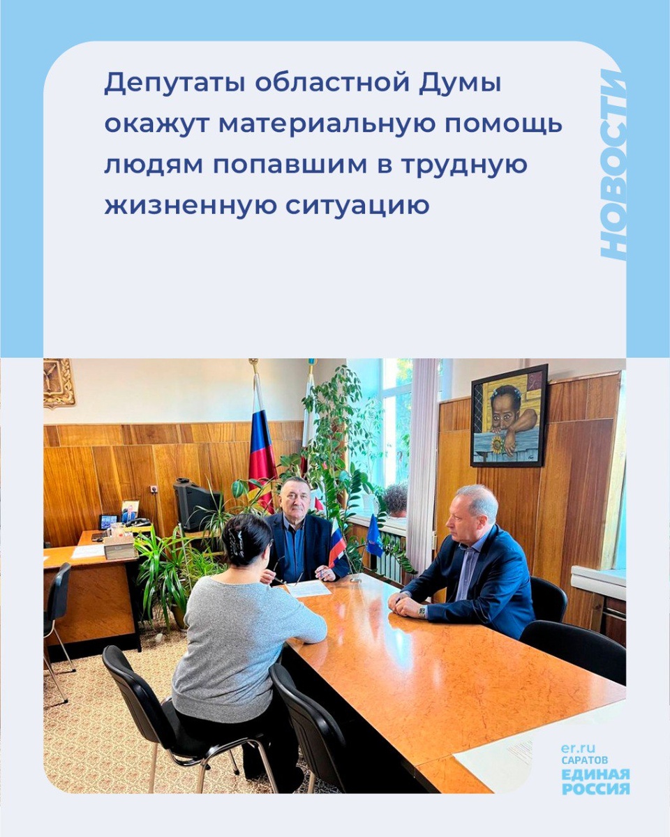 👥Депутаты областной Думы окажут материальную помощь людям попавшим в трудную жизненную ситуацию