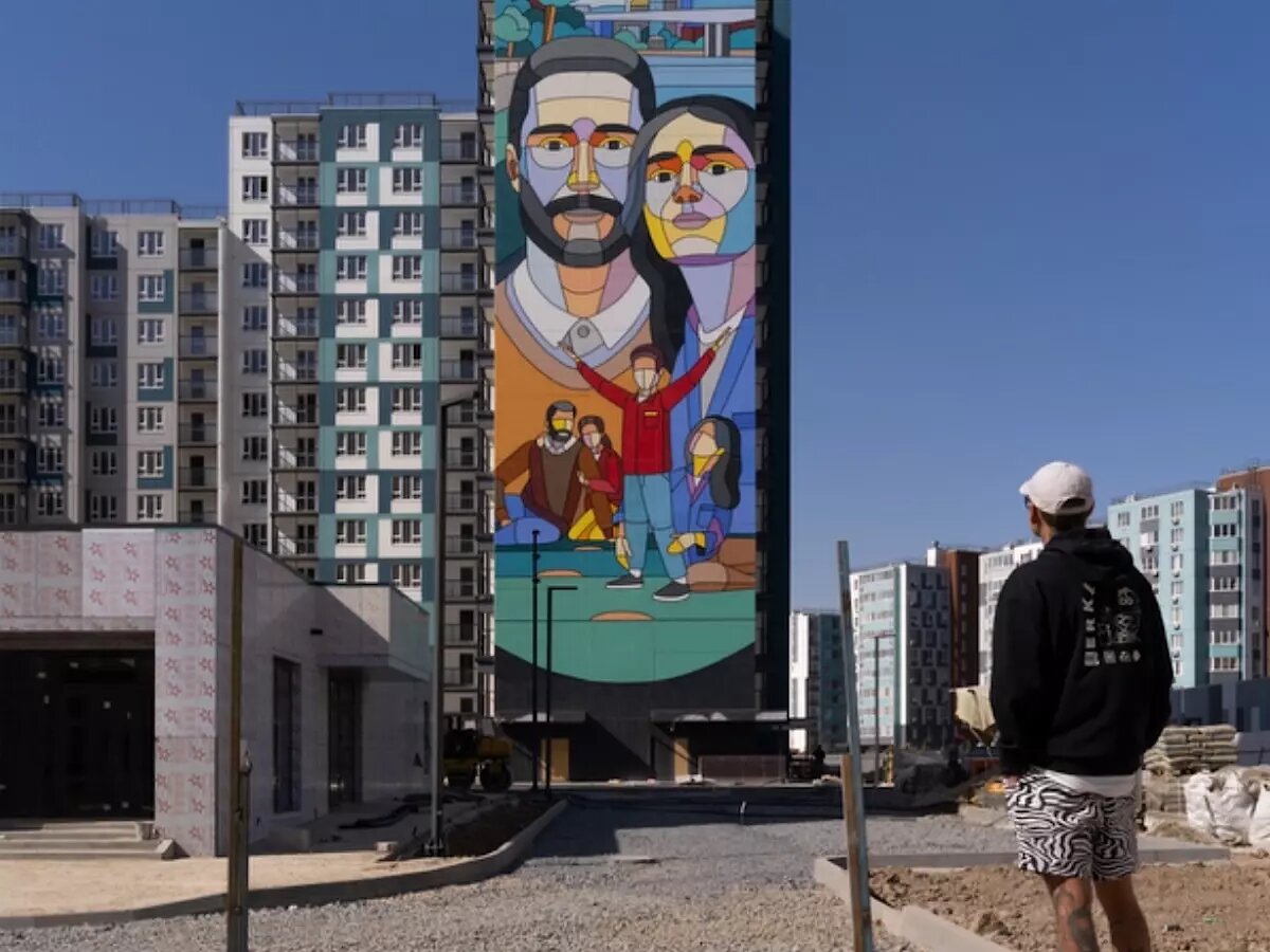 - В 2021 году представители застройщика предложили мне сделать росписи на двух торцах будущих домов в районе «5 Элемент». Я подготовил эскизы и спустя два года приехал воплощать их на стенах, - рассказывает Дмитрий. - В итоге все прошло удачно, и меня пригласили подготовить еще две работы. Третью мы с помощниками нарисовали в этом году, а четвертую запланировали на 2025 год. Первая роспись