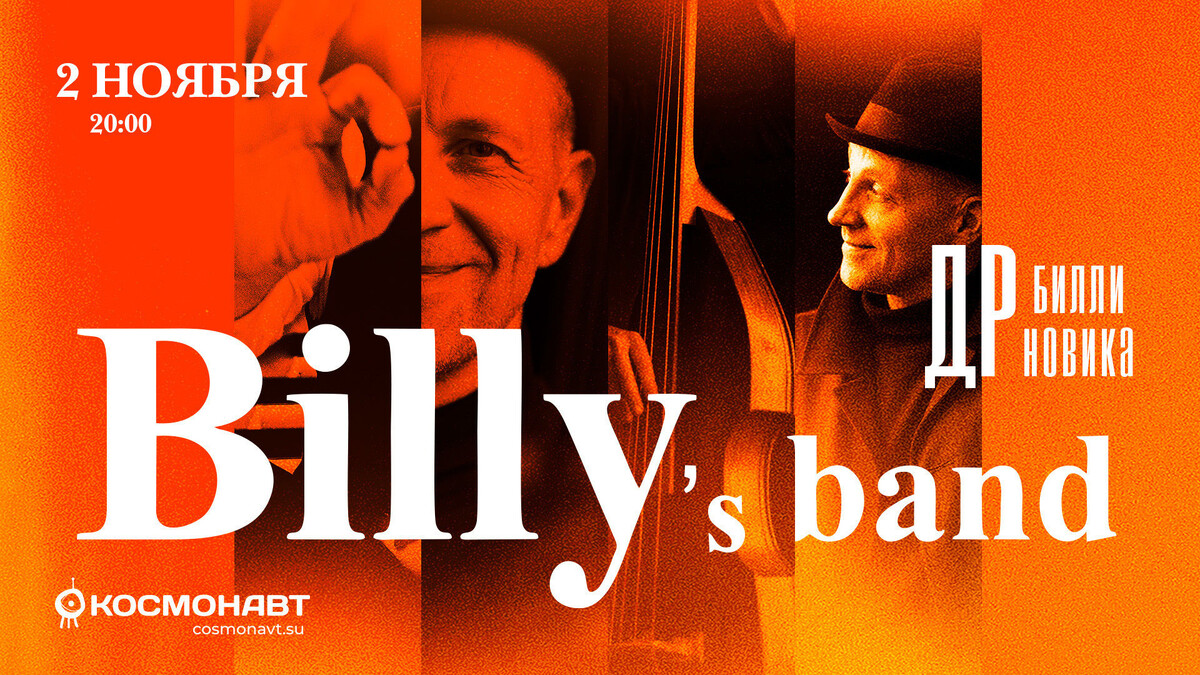 Билли Новик, основатель и фронтмен Billy's Band, празднует свой день рождения 30 октября. Легендарная петербургская группа приглашает всех желающих отпраздновать это событие в клубе «Космонавт» 2 ноября. Billy's Band известна своими энергичными свинговыми ритмами и проникновенными текстами. Душевные песни брутального романтика и интеллигентного неудачника находят отклик у широкой аудитории. Их предрассветные блюзы и томительные баллады о счастье, любви и верности остаются в памяти надолго. Такие хиты, как «Оторвёмся по-питерски», «Счастье есть» и «Где спит твоё сердце», стали настоящими легендами. Billy's Band – пример группы, которая добилась успеха без помощи продюсеров и рекламы. В состав коллектива входят поющий контрабасист и автор песен Билли Новик, мультиинструменталист и саксофонист Михаил Жидких и талантливый гитарист Марс Ковалевский. Группа выглядит гармонично как на больших сценах, так и в камерных залах. Каждый концерт Billy's – это динамичное шоу, доверительное общение, д