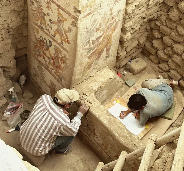 Археологи в Перу сделали уникальное открытие: они раскопали тронный зал 1300-летней давности, принадлежащий царице из культуры Моче. Это помещение украшено красочными фресками, изображающими правительницу, однако останки её скелета и гробница пока не найдены. Тронный зал, расположенный в Пеньямарке, относится к седьмому веку, периоду расцвета цивилизации Моче на севере Перу. Народ Моче, живший до появления письменности, прославился сложной архитектурой, гробницами и искусными керамическими изделиями. На фресках в тронном зале изображена правительница в короне и с различными символами власти: она держит кубок, беседует с существом с птичьими крыльями и принимает дары от подданных. Трон, сделанный из необожжённого кирпича, содержит необычные находки — бусины из зелёного камня и человеческие волосы, возможно, принадлежащие царице. В будущем учёные планируют провести анализ ДНК, чтобы это подтвердить. Женщины-правительницы не были редкостью в культуре Моче, что доказывают высокопоставленн