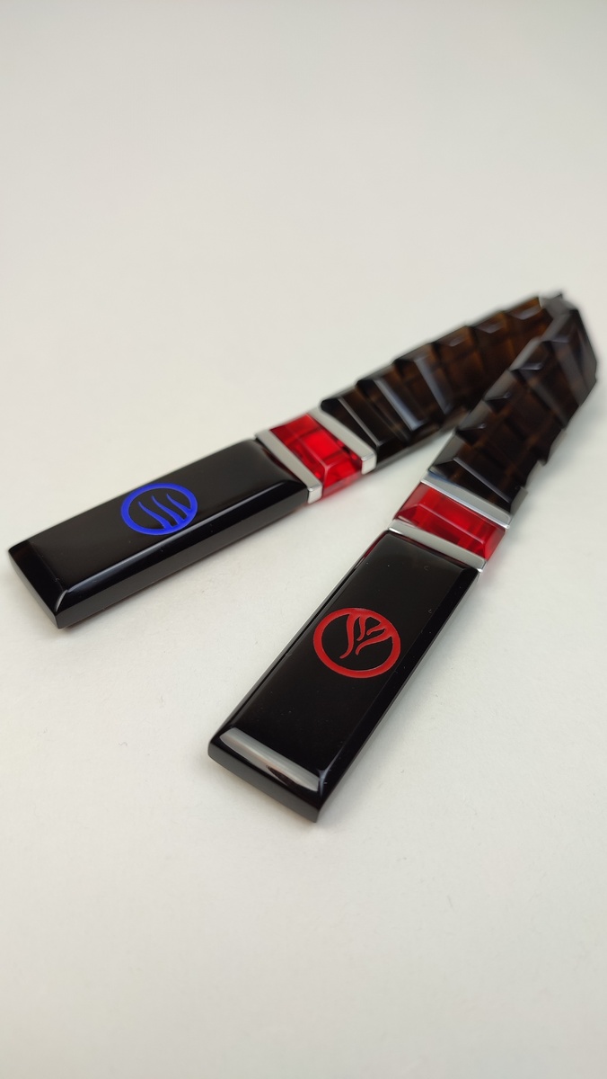 толщина ~ 8-8,5 мм. Добавлены 5 алюминиевых проставок Гравировка нанесена на четыре поверхности из четырёх, содержит в себе четыре эскиза. Гармония всех природных элементов в одном аксессуаре! Черный цвет в основе, алюминиевые проставки и рубиновые вставки - каждый элемент этих чёток продуман до мельчайших деталей. Гравировка четырёх стихий символизирует баланс и гармонию, вдохновляя на глубокое осознание силы природы и её элементов. Чётки "Стихия" - это не просто аксессуар, а символ вашей связи с окружающим миром. Пусть они напоминают вам о равновесии и внутреннем спокойствии, которое так важно в современном мире.