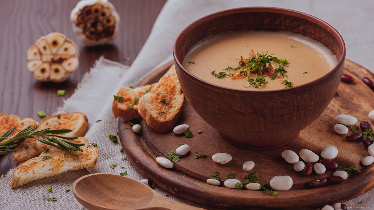 Фасолевый суп-пюре — это густое кремообразное первое блюдо, основным ингредиентом которого является фасоль. Такой суп отличается насыщенным вкусом и питательностью. Он может быть как самостоятельным блюдом, так и частью обеда. Ингредиенты: Приготовление: В кипящую воду или бульон добавить фасоль, лук, морковь и картофель. Варить на среднем огне 15-20 минут, пока овощи не станут мягкими. С помощью блендера или миксера измельчить суп до состояния пюре. Посолить, поперчить, добавить специи по вкусу. Подавать горячим, украсив зеленью. Фасолевый суп-пюре — это вкусное и питательное блюдо, которое может стать отличным выбором для обеда или ужина. Приятного аппетита!