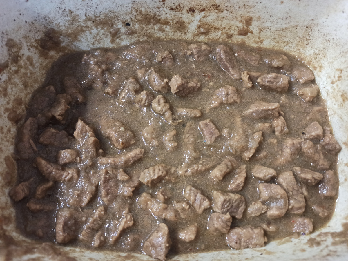 Добрый день! Я нашла для себя и своей семьи идеальный рецепт гуляша. Весь секрет в количестве репчатого лука. По мере тушения волокна лука распадаются, превращаясь в самостоятельный и достаточно густой соус, прекрасно дополняющий мясной гуляш. Рецепт: - 700 г мякоти молодого бычка - 350 г порезанного полукольцами репчатого лука - соль и специи по вкусу Процесс приготовления: Мясо нарезать небольшими кусочками, тщательно промыть. Нагреть казан или сковороду с толстым дном с небольшим количеством растительного масла. Опустить мясо, перемешивая припустить минут 5 на сильном огне. Добавить лук, закрыть крышку, убавить огонь. Оставить тушиться 1,5-2 часа помешивать время от времени. За 5 минут до готовности добавить соль и специи по вкусу. Перемешать, закрыть крышку и дать постоять отдохнуть минут 10-15. И всë, вкуснейший гуляш готов! Это очень, очень вкусно! При подаче украсить зеленью. Приятного аппетита!