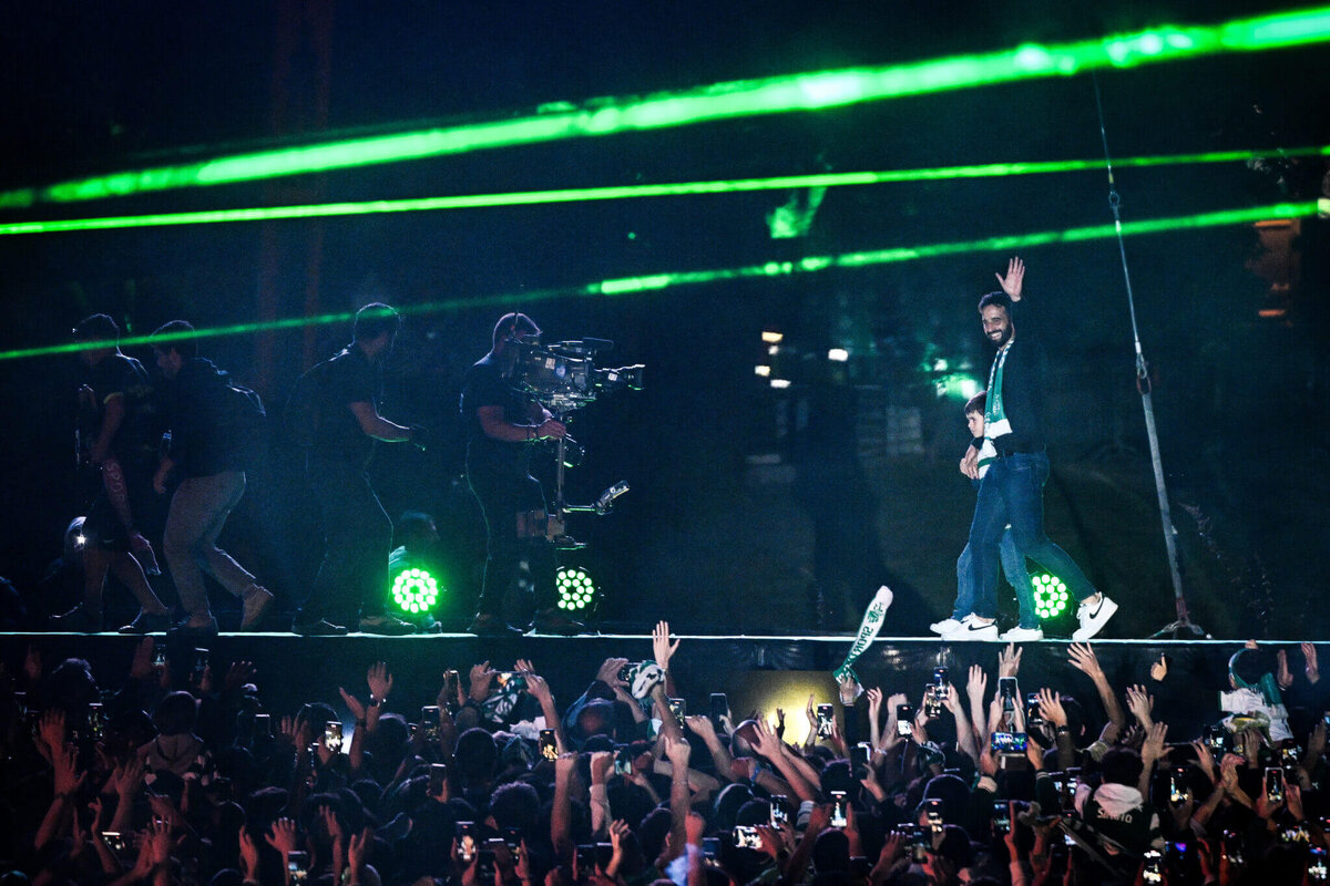 Аморим празднует титул чемпионов Португалии вместе с фанатами «Спортинга».