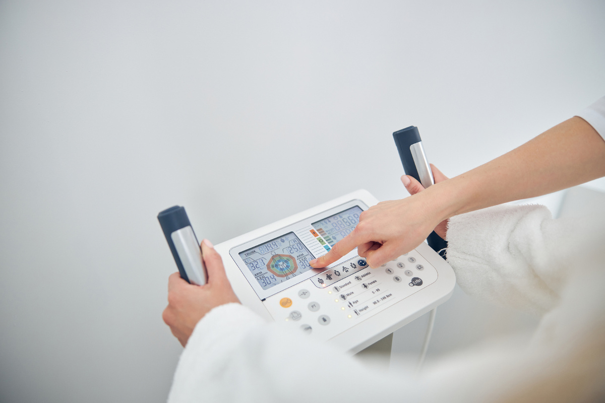 Биоимпедансометрия – это высокоинформативный, оперативный и абсолютно безопасный метод исследования организма. Он не имеет противопоказаний, за исключением кардиостимулятора. Во время исследования учитываются основные компоненты тела. Метод основан на измерении величины электрического сопротивления тканей человека.