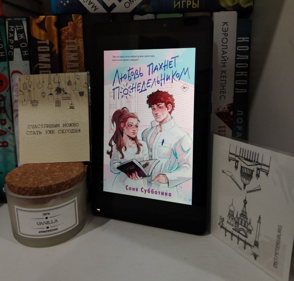 Прошло уже 2 недели, как я закончила читать "Любовь пахнет понедельником" от Сони Субботиной. И всё это время оттягивала с отзывом. И расскажу почему) Немного сбила с курса аннотация книги, ожидала любовь - морковь 18+, и с самого начала, действительно, так казалось ( привет "Милые обманщицы"). Но здесь нет тропа студентка/преподаватель. Когда мой обидчивый хомяк пережил эту травму, решила, что пора посмотреть на эту книгу объективно и оперировать голыми фактами (простите меня за мой сарказм) 😈 Здесь поднимается очень острый вопрос - харассмент и его воздействие на жертву. Меня необычайно бесил Илья Александрович - жалкий, избалованный тип, который думает, что всё сойдёт ему с рук. И по сути, всё сошло. Ждала более жестокого возмездия за его действия. Как и главной героине, мне очень хотелось помыться, после встречи с ним. Герои, в целом не плохо прописаны. Ева - студентка мед. Факультета. Бывает ревнива и эгоистична, но ты ощущаешь, как её затягивает эта липкая депрессия и
