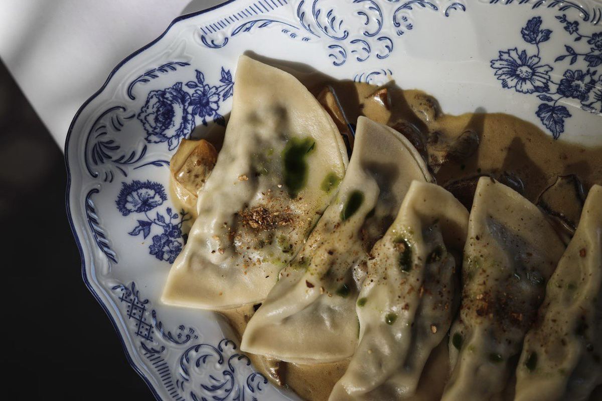 Осень — это, конечно, пора грибных блюд, так что мы никак не можем обойти их стороной. И хотя этот год выдался не очень грибным, многим все равно удалось разжиться этим продуктом. Сегодня мы будем готовить вареники сразу с несколькими видами грибов, хотя основной акцент в этом блюде придется на ароматные белые. Рецепт вареников мы узнали у шеф-повара ресторана Ivanka Ивана Негутарова. Для большей насыщенности он добавляет к ним не сметану, а густой соус, основу которого составляет упаренный бульон с насыщенным грибным ароматом. 📌Подписывайтесь на наш канал, чтобы не пропустить последние новости о еде и сохранить все рецепты в одном месте. ☝🏻Вам понадобится: Ингредиенты для всего блюда: Для фарша на вареники: Для теста: Замешиваем тесто из всех перечисленных компонентов и даем ему отдохнуть 1 час под пленкой. Затем раскатываем тесто и вырезаем из него большие кружочки. Пока тесто отдыхает занимаемся приготовлением фарша. Все грибы нарезаем очень мелко и быстро обжариваем на растительн