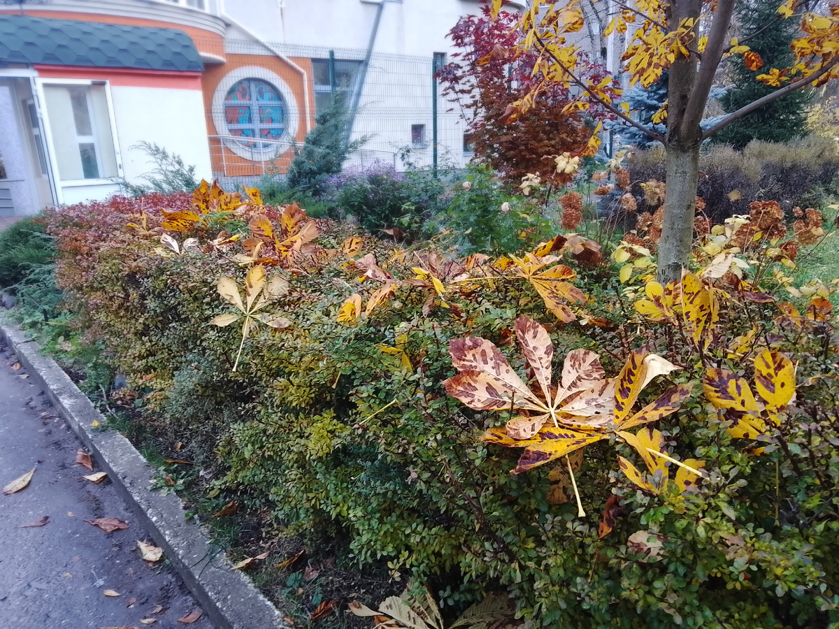 Очаровали меня каштановые листья на низкорослом кустарнике.