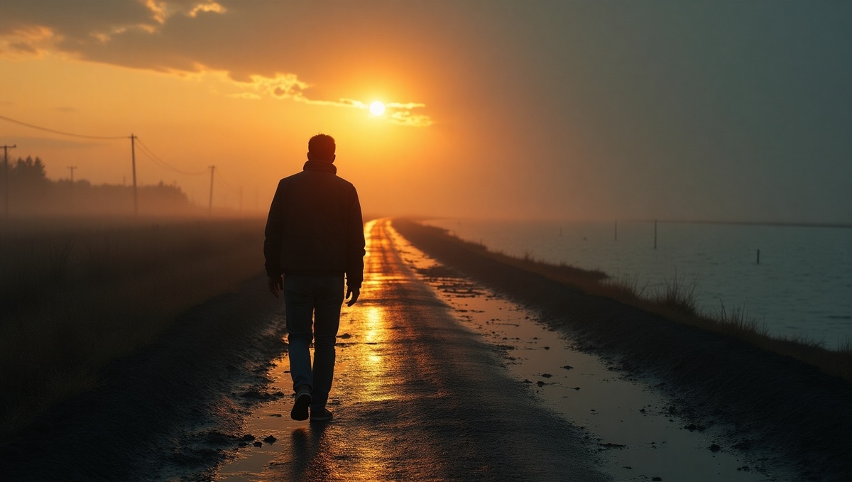 Герой чуть сощурился на закатный свет, прорезающий густую сеть облаков. Его лицо – каменное, как у резчика с многолетней выучкой. Пальцы сжимаются, выскальзывая из сцепленных рук с пустой решимостью. Была поздняя осень, и из местных дорог только одна могла называться асфальтом – остальное тонуло в грязи, как олово в литейном котле. Михаил двигался к станции пешком, подолгу застревая взглядом в слякотных лужах. В голове его крутился монолог, который вот уже двадцать минут не находил логического завершения. Он перемалывал слова, отыскивая для себя правду, как ворочаешь камни, ища под ними огниво. "Всё случайности... Всё одно", – крутилось у него в мыслях. Но как будто он и сам чувствовал: слова эти – мишура, пыль, которой он намеренно обсыпал себя, чтобы не глядеть в сердце. Не верил он уже в случайности, от которых задыхаются мальчишки и воробьи в гнёздах. В этот момент, как будто из воздуха, рядом оказался Глеб – странный человек, однажды появившийся в его жизни, и с тех пор навязавший