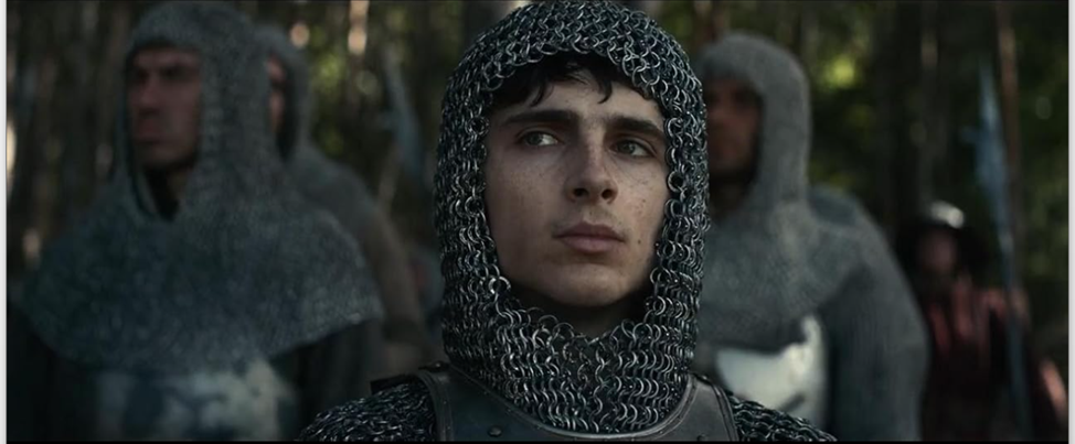 Это что такая пасхалка? На небе взошла луна и среди ночи же Тимоти докладывают, что к нему на аудиенцию прибыл наш дракулито-вампиреныш Паттинсон в образе дофина Людовика Гиеньского. Это, пожалуй, самая большая странность данного проекта. Дофин Людовик не слишком известный исторический персонаж, да и касался ли еще кто-нибудь этой личности в экранизациях? Романов-то просто с его участием еще поискать надо, всё потому что он слишком рано умер. Говорить, что французской армией и тем более при Азенкуре, Людовик не командовал, пожалуй, излишне, это и так все, кроме Шаламе и Паттинсона знают.