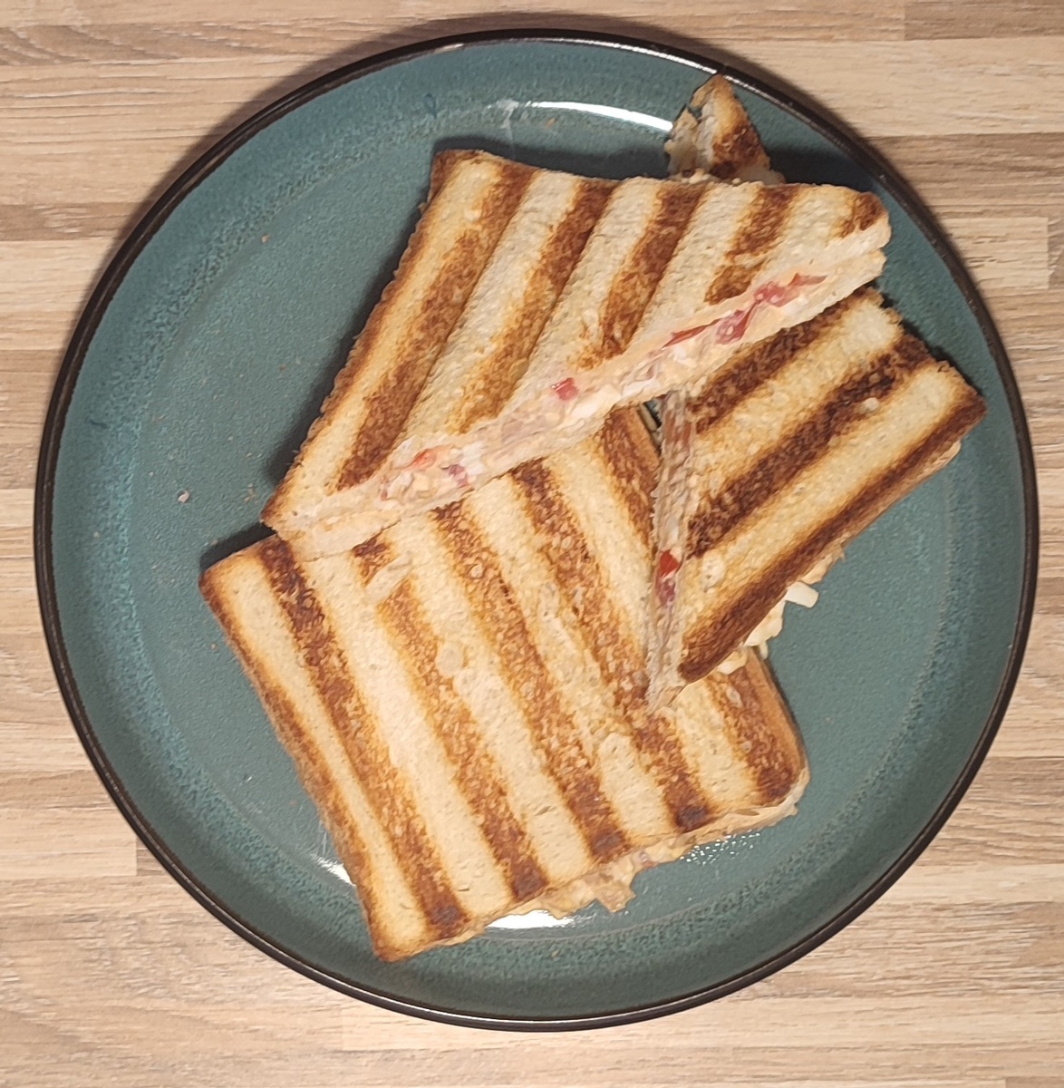 - Равномерно распределите начинку по хлебу и накройте вторым кусочком.