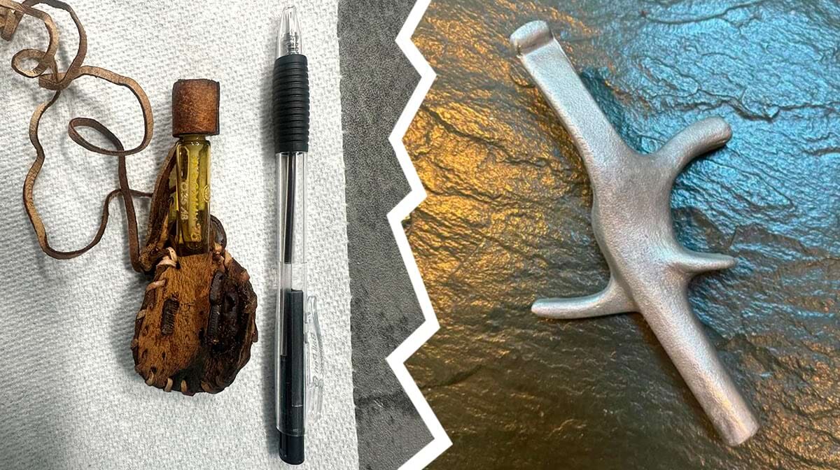 Ответ: «Это наконечник стрелы. Вероятно, кто-то не смог достать наконечник, поэтому открутил древко стрелы, чтобы использовать его позже, а наконечник просто оставил там»