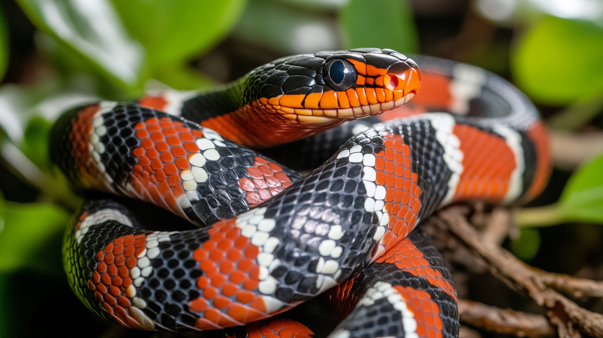 Псевдокоралловые змеи окрашены в яркие черные-бело-красные полосы – точь-в-точь как смертельно ядовитая коралловая змея.