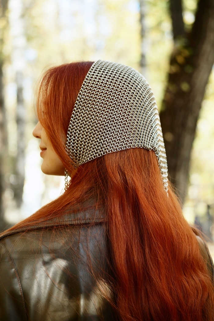 Наконец могу показать готовую работу - кольчужную косынку. Дисклеймер: изделие носит декоративный характер, не является элементом исторической реконструкции/ролевых игр и прочим. Дизайнерский объект, созданный для украшения. Техника: кольчужное плетение, европейское 4-в-1. Материал: нержавеющая сталь, кольца 7*1 мм в основном полотне, вспомогательные 5*0, 8мм в цепях и в обшивке края. Размеры: в разложенном виде ширина полотна у основания треугольника 53 см. + дополнительно застёжка и цепочки (подбородочная и декоративные). Вес 475 г. Мои другие работы можно посмотреть по ссылкам в профиле. Пост автора ViyanaJewelry. Читать комментарии на Пикабу.