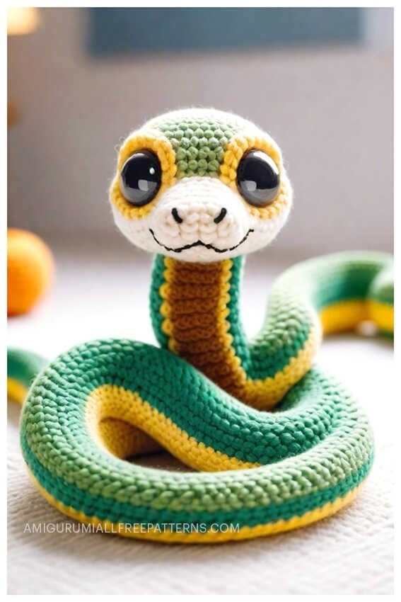 Нашла еще вот такую змейку, очень красивая!, но к сожалению на нее нет схемы, сама схемы составлять я не умею, может попробует кто нибудь связать такую? А если и схемкой поделитесь, буду очень благодарна