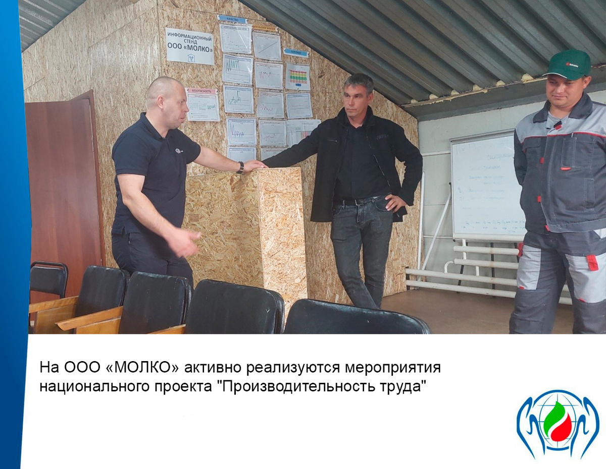 В рамках реализации мероприятий нацпроекта "Производительность труда", у инфоцентра предприятия ООО «МОЛКО» прошло очередное совещание, посвященное вопросам повышения производительности труда всфере производства сырого молока.