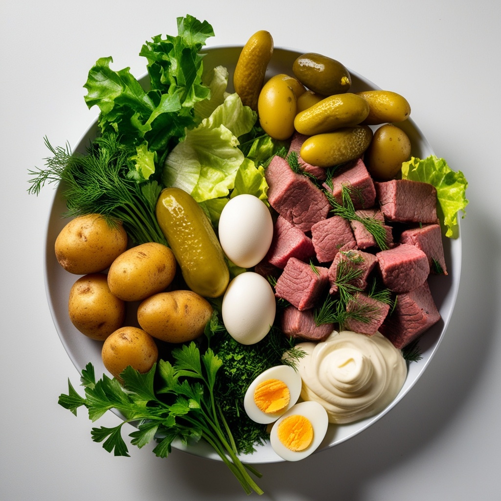 Салат Оливье — это одно из самых популярных блюд на праздничном столе в России и странах СНГ. Его неотъемлемая часть новогоднего меню, но его можно готовить и в любое другое время. В этой статье мы расскажем, как приготовить классический салат Оливье. Для приготовления салата вам понадобятся: - 3-4 картофелины - 3-4 моркови - 4 яйца - 300 г вареной колбасы (или куриного филе) - 1 банка зеленого горошка (консервированного) - 3-4 соленых огурца - 1 маленькая луковица (по желанию) - Майонез по вкусу - Соль и перец по вкусу - Зелень для украшения (по желанию) - Отварите картофель и морковь в мундире до готовности. После остывания очистите их и нарежьте кубиками. - Отварите яйца вкрутую (примерно 10 минут после закипания), остудите, очистите и нарежьте кубиками. - Нарежьте колбасу (или куриное филе) и соленые огурцы кубиками. - Если используете лук, мелко нарежьте его. - В глубокой миске соедините нарезанные картофель, морковь, яйца, колбасу, огурцы и лук. - Добавьт