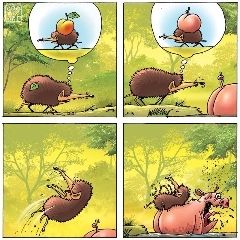 Александр Бронзов и Игорь Жеведь — российские карикатуристы, которые сумели пройти путь от начинающих фрилансеров до признанных профессионалов своего дела. Они познакомились более 20 лет назад. В газету, в которой работал Жеведь, пришёл молодой карикатурист Бронзов, представить на суд редакции свои рисунки. Так и сработались, сдружились, а спустя некоторое время решили организовать уже своё творческое объединение «Коммиксариат». Впрочем, впоследствии его переименовали в BAZI, взяв за основу свои инициалы, а после ComMixArt. Художники поначалу работали над достаточно стандартными карикатурами «с облачками», однако вместо уже всем приевшейся всем острой сатиры, пик популярности которой пришёлся на 90-е, решили просто юморить о нашей жизни, создавая истории со знакомыми многим с детства или придуманными персонажами. Так появились серии карикатур о пугливом страусе Гоше, неудачливом ёжике, вороне и лисице, Красной Шапочке и Буратино. И подобные комиксы сразу стали очень популярными, благод