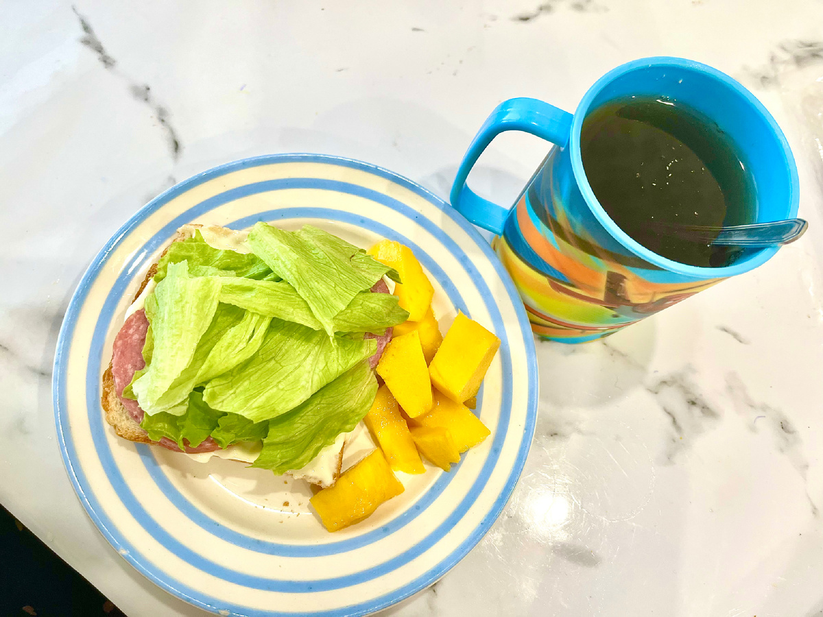 Сегодня был супер активный день. Чего я только не успела сделать. Где только не побывала, несмотря на то, что еще и работала. Бутерброды сегодня были. Плавленый сливочный сыр President. Колбаса варено-копченая, айсберг, манго, чай. Муж купил вечером чак-чак. Очень уж любим мы этот десерт. Поэтому ближайшее чаепитие было с ним прям не отходя от рабочего места. Сегодня, кстати, в родительский школьный чат прислали фото потеряшек. Дети то ушли на каникулы. И все потеряшки сложили в одно место, чтоб родители могли прийти и забрать. Я в шоке. Все свое имущество потеряли будто. Обувь, шапки, перчатки, носки, форму и двое куртки теряют😀 Еще было фото с телефонами, кучи ключей, крестики, карточки банковские, пеналы и прочее. Ну и ну) Мои тоже в этом году теряли телефон, форму спортивную, учебники, но благо все сразу находили в тот же день или на следующий. На обед доедала оливье, картофель запеченный и сто лет будто не ели сосиски, захотелось очень. Запекал на гриле их. Вечером ужин пригото