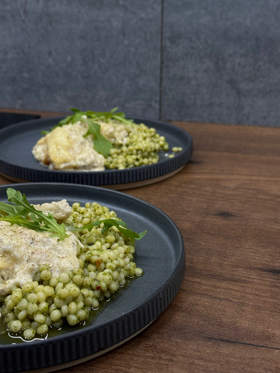 Ну оооочень вкусно! Что нам для этого нужно: - куриное филе - ананас (кружочками) - майонез - соль/перец/специи - лук репчатый (средний) - сыр твердый (тёртый) Паста птитим с соусом: - птитим (я покупала в самокате) - руккола - перчик чили - авокадо - соль/перец/специи - оливковое масло Делаем курочку: мясо нарезаем пластиками и отбиваем, выкладываем в форму и смазываем майонезом, солим/перчим/добавляем специи, сверху выкладываем лук полукольцами, ананасы и снова смазываем майонезом, ставим в духовку на 180 градусов (35-40 минут), за 5 минут до готовности посыпаем сыром и отправляем в духовку. Переходим к пасте 👉🏻 Варим птитим до готовности. Делаем соус: в чашу блендера скидываем рукколу/масло/чили/соль, перец, специи, авокадо (половинку) и взбиваем. Перемешиваем соус с птитимом. Выкладываем на тарелку, добавляем курочку и украшаем зеленью. Готово! Приятного аппетита 🤎 #васинаеда #васинакухня