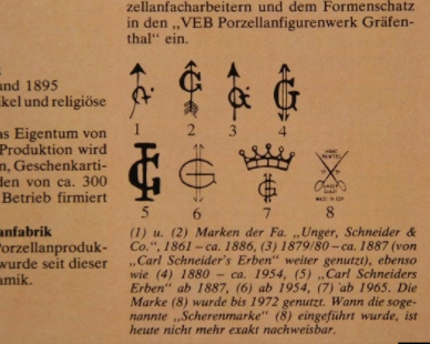 Компания была национализирована в 1951 году и принадлежала комбинату VEB Porzellanfiguren Gräfenthal вместе с Carl Scheidig KG. Группа не использовала никаких собственных знаков, но продолжала использовать обычные заводские версии, даже если можно было найти несколько изделий, название которых показывается как отдельное дополнение к обычному заводскому знаку. Следует отметить, что в 1960-е годы компания также перевыпустила множество серий на основе старых форм; Эти ремейки не имеют дополнительных маркировок, а просто несут оригинальные старые маркировки, включенные в форму, поэтому следует сравнивать состояние остекления и общую цветовую гамму, использованную для проверки изделия.