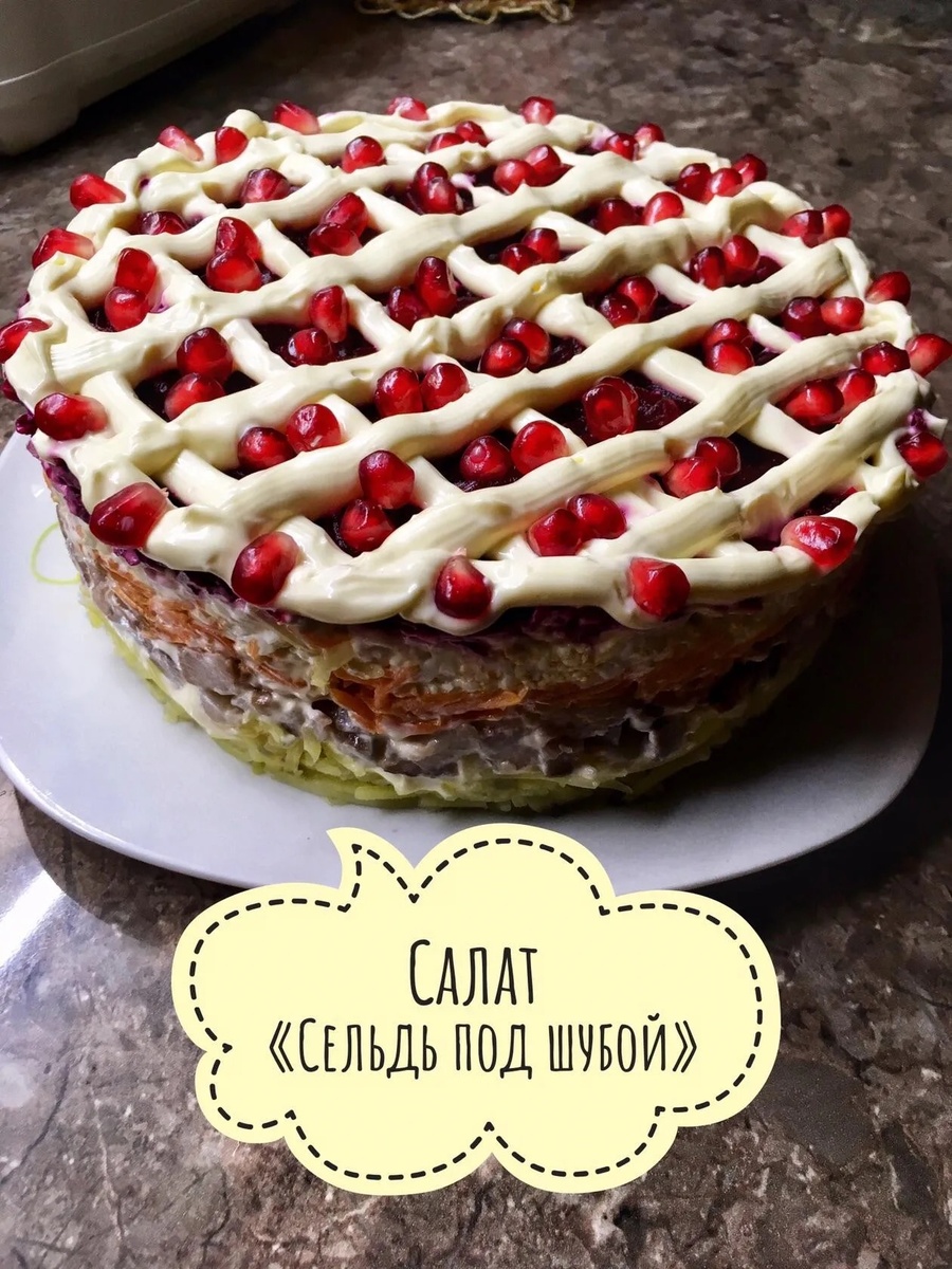 🎅🏼🎉 Салат «Селедка под шубой»- всегда на Новый год. Это уже традиция такая. —Неполезный, майонезный, устаревший? —Нет, не согласны. Ну вот любим ❤️ Ингредиенты: сельдь соленая, картофель, яйца, лук репчатый, морковь, свекла, майонез. Собираем слои: 1 слой-натёртый отварной картофель Смазать слой майонезом 2 слой-мелко нарезанное филе селедки 3 слой-мелко нарезанный репчатый лук Смазать слой майонезом 4 слой-мелко нарезанные яйца Смазать слой майонезом 5 слой-натертая отварная морковь Смазать слой майонезом 6 слой-натертая отварная свекла Сеточка из майонеза Можно украсить зёрнами граната Поставить на пропитку на ночь в холодильник. Приятного всем!!