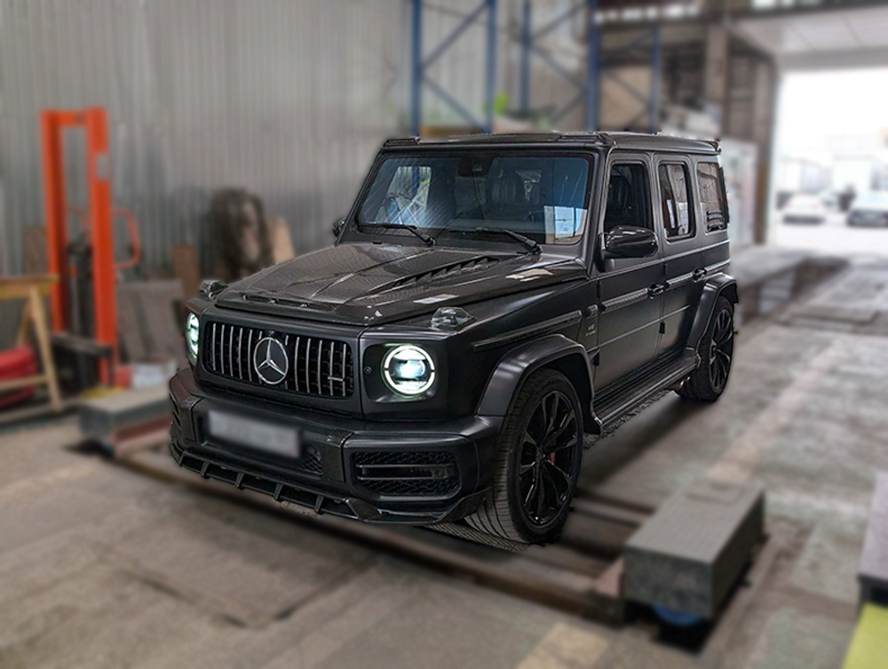 Оформили и зарегистрировали аэродинамический обвес марки TopCar Design на Mercedes-Benz AMG G 63, был установлен композитный элементы: капот, спойлер на крыше, декоративная накладка на крыше, кожух запасного колеса, сплиттер переднего бампера, диффузор заднего бампера. ✔️ Оформили Заключение предварительной технической экспертизы на предмет возможности подобных изменений. ✔️ Получение Заявления из технадзора ГИБДД на разрешение внесения изменений в конструкцию. ✔️ Провели измерение (испытание) параметров, подтверждающих оценку соответствия требованиям, предъявляемым к транспортному средству, после внесённых изменений, с оформлением сопроводительной документацией. ✔️ Оформили Протокол проверки безопасности конструкции транспортного средства после внесённых в неё изменений. ✔️ Провели технического осмотра транспортного средства с оформлением Диагностической карты после в несения изменений в конструкцию. ✔️ Подали Заявления в технадзор ГИБДД на получение свидетельство о соответствии транс