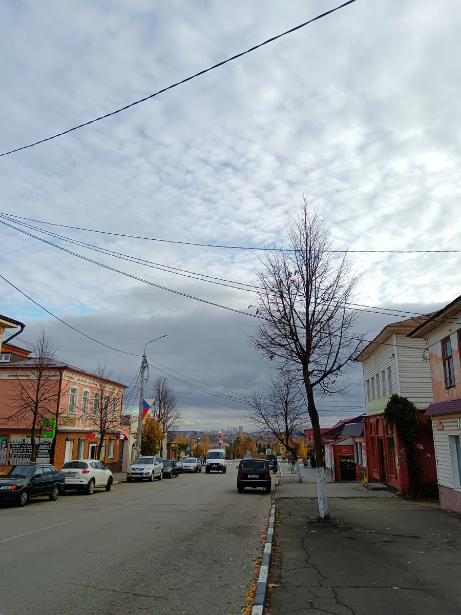 Принесла вам сегодня крошечный кусочек нашего города под осенним небом. Это у нас главная улица, а впереди Красная площадь. Может не самый лучший вид, но родной. А то что у меня все магазины, да магазины.. Хотя про них сегодня как раз и будет, и про покупки, и про то, как нас едва на полторы тысячи не обманули и про находку из прошлого.