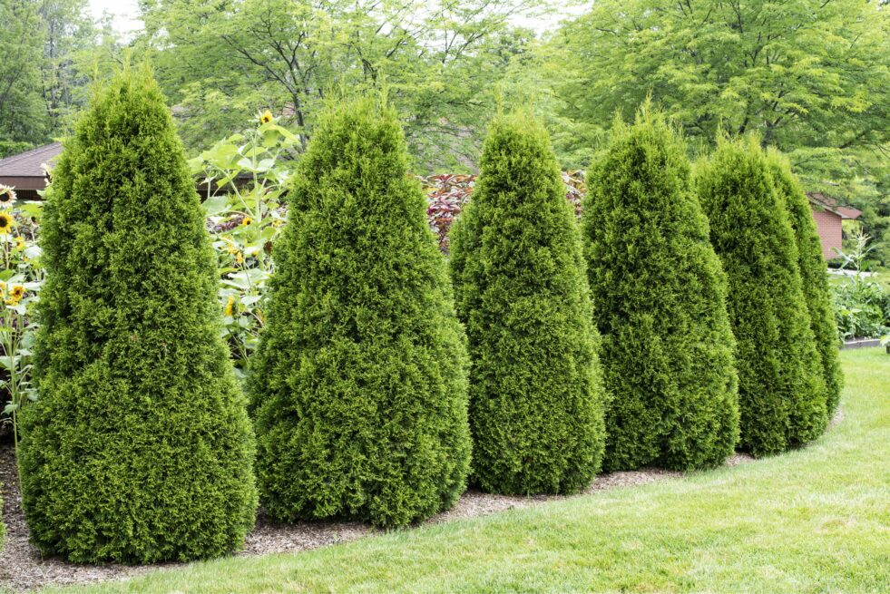 Туя — это вечнозеленое дерево, которое отличается своей устойчивостью к неблагоприятным условиям. Она прекрасно переносит засуху и может расти в любых типах почв. Кроме того, туи имеют разнообразные формы и размеры, что позволяет использовать их как в качестве одиночных растений, так и в групповых посадках.