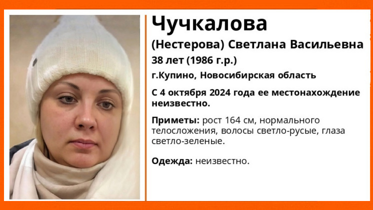 Если у вас есть информация о местонахождении Светланы Чучкаловой, сообщите об этом по телефону ПСО: 8-800-700-54-52 или наберите 112.