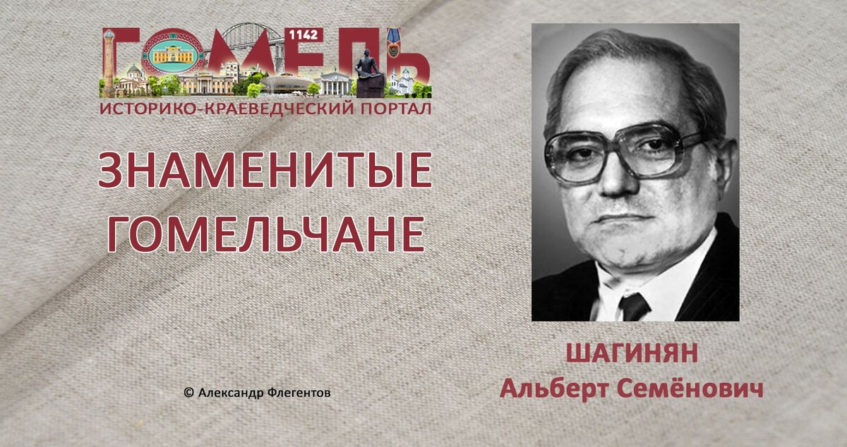 Альберт Семёнович Шагинян (14.07.1934, Армавир Краснодарского края, Россия — 20.08.2000) — белорусский учёный в области машиностроения. Доктор технических наук (1984), профессор (1988). Заслуженный деятель науки Беларуси (1990). Заслуженный изобретатель Беларуси (1980). Окончил Ростовский институт сельскохозяйственного машиностроения (1957). С 1957 года на Армавирском заводе испытательных машин. С 1973 года главный конструктор Гомельского специального конструкторско-технологического бюро сейсмической техники (сейчас это ОАО «Сейсмотехника»). В 1986-2001 годы ректор Гомельского технического университета им. П.О. Сухого. Одновременно с 1991 года председатель Гомельского отделения Белорусской инженерной академии (с 1992 года — вице-президент). Научные работы по теории импульсных вибрационных источников сейсмических сигналов, методам анализа и синтеза систем «источник сейсмических сигналов — геологическая среда». Под его руководством разработана техника, с помощью которой про