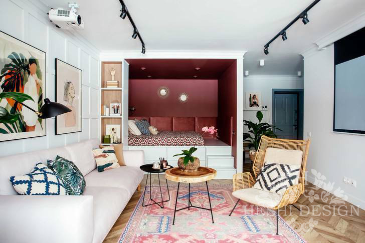 Маленькая квартира в стиле бохо, 47,7 м² Этнический декор, смешение принтов и смелое использование цвета создают атмосферу европейских интерьеров. https://heshi.ru/zilart #интерьер #дизайнинтерьера #дизайндома
