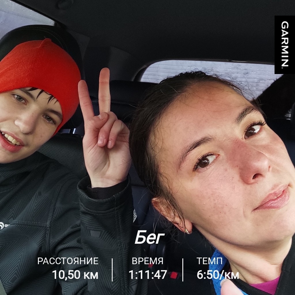 Сегодня второй день подряд побежала в компании сына. Несмотря на то, что сегодня тренировка была непростая. Пришлось шерстить в своих запасах одежды, чтобы выдать беговую экипировку. Хорошо что пока он не сильно выше меня, и мои куртки с лонгсливами ему подходят. Общий объем намеченного был около 10 километров, включая интервалы 1600 метров в темпе 5:20. Первый интервал мы пробежали вместе до конца, второй уже дался тяжелее. Последние 200 метров сын прошел пешком. Третий интервал бежать уже не смог. Но несмотря на это, Витя большой молодец, потому что он совсем не бегун, он боксер. Но мы пришли с ним к общему решению, что ему необходимо повышать выносливость и дыхалку. Что в общем точно можно сделать на беговых тренировках. Так что бегаем мы сейчас втроем. Я, сын и моя беговая собака. Я бы еще и мужа вытащила, но он категорически против. Я сегодня тоже пробежала интервалы медленнее чем нужно, так как было скользко: дождь и листья, и надо было надеть трейловые кроссовки. Ну и пот