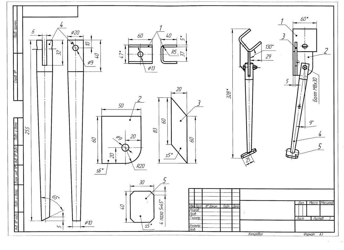 Чертеж боковой подставки оппозит Урал Днепр