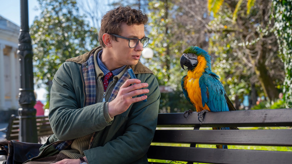 Гамлет предлагает географу заняться традиционным прибрежным бизнесом — предоставлять туристам попугая для фотографирования за какие-то каббалистические суммы: «Фотка — 499 рублей, фотка плюс видос — 999». Затея быстро проваливается, потому что попугай то кусает туристов за пальцы, то обзывает семью из трех толстяков жирными. Зато на героя снова накатывает порыв бескорыстного экскурсоводческого вдохновения. Толпа жадных слушателей моментально собирается вокруг Митяя, стоит ему только сказать прогуливающейся женщине с ребенком: «Вы знаете, мы же с вами находимся в Сочи. Здесь очень много всего интересного…» Невероятно трогательно видеть, как искренне Никита Кологривый изображает доброго чудака, особенно в кадрах с детишками. Например, склонившись к девочке в розовых пушистых наушниках, пучит глаза, испускает таинственный вздох и аккуратно разворачивает малютку лицом к морю: «По одной из легенд, здесь располагалась… Таврида. Представляешь? Именно здесь», — после чего, махнув рукой куда-то в морскую даль, Митяй, похоже, с трудом удерживается от того, чтобы начать приплясывать.