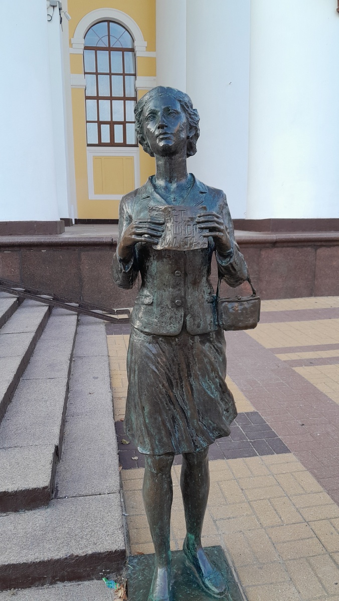 Решила сделать рубрику "Памятники и жанровые скульптуры". Иногда они бывают веселые, иногда грустные, иногда назидательные, иногда развлекательные, бывают с болью и страхом. По памятникам можно изучать историю города. А можно рядом с городскими скульптурами провести приятный выходной. Буду рассказывать о тех, которые чем-то меня затронули. Открывает раздел- калужская "Театралка". Официально называется памятник театральному зрителю. Надеюсь, что театральный зритель продолжает существовать и это прижизненный памятник. "Театралка" дама роста выше среднего 174 см., и в довольно приличном весе 158 кг.. Хотя по фигуре этого не скажешь. Мне кажется, что она библиотекарь, искусствовед или преподаватель. У Калужского драматического, театра, в надежде приобрести лишний билетик, "театралка" стоит с 2008 года. Но не отчаивается. Несмотря на то, что вид у неё не очень весёлый, "театралка" обладательница мирового рекорда -это первый памятник в мире, посвящённый театральному зрителю. А у Вас "Нет л