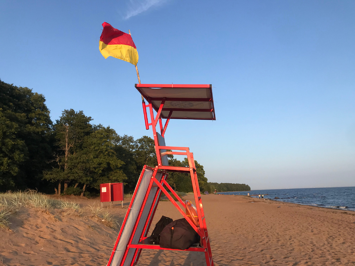 Собранная вышка спасателя и атрибуты для комфортной работы на пляже. Позже ещё появится большой зонт.
