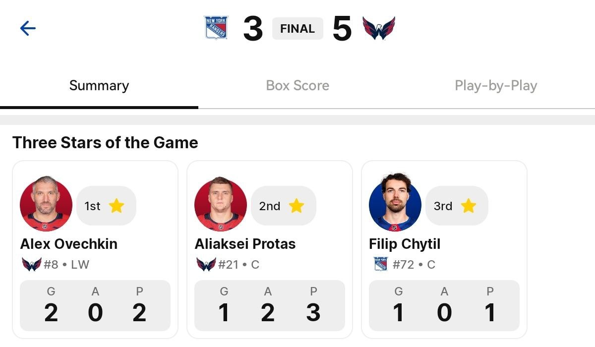 Во вторничном матче «Вашингтона» и «Рейнджерс» капитан «столичных» Александр Овечкин затмил российских лидеров ньюйоркцев – Артемия Панарина и Игоря Шестеркина. 39-летний нападающий впервые в текущем сезоне оформил голевой дубль и был признан первой звездой встречи. Ови открыл счет в противостоянии «Кэпс» и «Рейнджерс» уже на 4-й минуте, ловко отправив шайбу в «домик» Шестеркину. Посмотреть видео Результативность капитана поспособствовала победе «Кэпиталз» (5:3) и вызвала резонанс среди американских болельщиков. @tschutt91:– Ха-ха-ха, а некоторые недалекие люди уже успели списать Ови! @CrazyCapsFanboi:– Как-то это странно. Мне же рассказывали, что Ови уже сдулся и забивает голы разве что в пустые ворота. @QOlsen52:– Люди, которые безапелляционно заявляли, что Ови никогда не приблизится к рекорду Гретцки, насколько глупо вы чувствуете себя сейчас? @AnishLoomba:– Просто Ови любит уничтожать «Рейнджерс». Вспомните, сколько важных голов в их ворота он забил. @BigHeadDucks:– Ови – это хокке