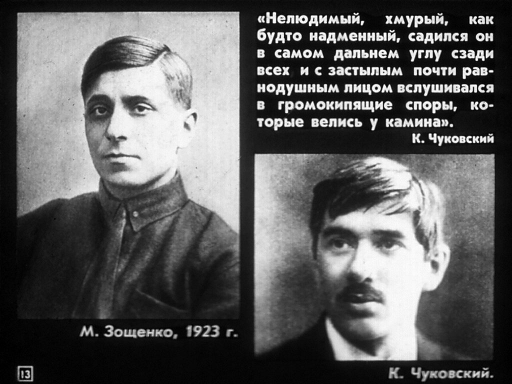 Я пошел к Зощенке. Он живет на Сергиевской, занимает квартиру в 6 комнат, чернобров, красив, загорел. Только что вернулся с Кавказа. «Я как на грех налетел на писателей: жил в одном пансионе с Толстым, Замятиным и Тихоновым. О Толстом вы верно написали: это чудесный дурак». А Замятин? «Он — несчастный. Он смутно чувствует, что его карьера не вытанцевалась, — и не спит, мучается. Мы ехали с ним сюда вместе: все завешивали фонарь, чтобы заснуть... Теперь он переделывает «Горе от ума» для Мейерхольда». — А вы? — А я здоров. Я ведь организую свою личность для нормальной жизни. Надо жить хорошим третьим сортом. Я нарочно в Москве взял себе в гостинице номер рядом с людской, чтобы слышать ночью звонки и все же спать. Вот вы и Замятин все хотели не по-людски, а я теперь, если плохой рассказ напишу, все равно печатаю. И водку пью. Вчера вернулся домой в два часа. Был у Жака Израилевича. Жак женился, жена молодая