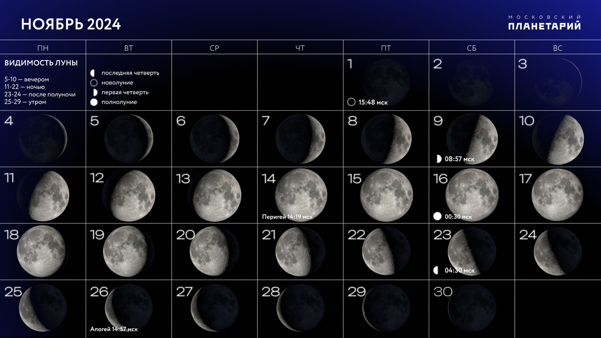 14 ноября - Луна в перигее своей орбиты на расстоянии 360109 км от Земли 14:19
