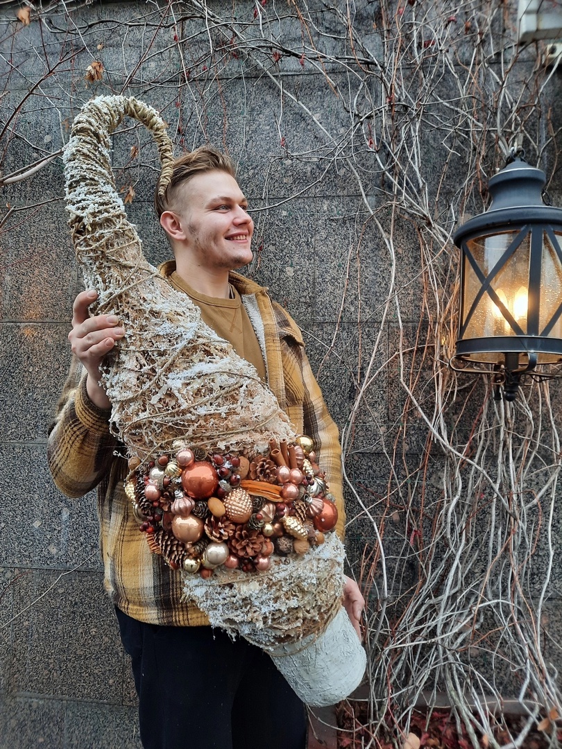 Благодаря флористическим приемам, художественным подходам, можно делать меньше, а добиться эффекта ВАУУУУ Например, елочка с сектором. Такую красотку я учу делать в новогоднем курсе на тарифе «профи».