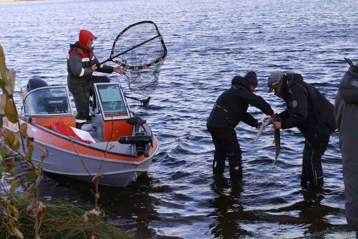 Вдруг до берега донесся рев лодочного мотора. Это экипаж Евгения Махова и Виталия Кима вез свой улов на взвешивание. Причалили. Поднялись по песчаному берегу и достали… шесть больших щук. Положили на весы – 22,68 килограмма! Конечно, сделали фото на память, прежде чем отпустить трофеи в воду. А главное – всё сделали быстро, ведь время идет, рыбу нужно отпустить в родную стихию! Экипаж отправился дальше за уловом.