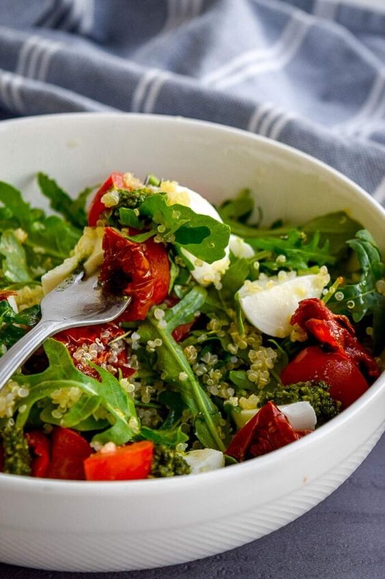 На днях я писала статью про суперфуды, которые обязательно нужно добавить в свой рацион. Поделюсь с вами рецептом одного простого и вкусного салата с киноа. Напомню, что киноа - зерновая культура, которая не содержит глютена. При этом киноа содержит все 9 незаменимых аминокислот! (Про пользу аминокислот можно прочитать в предыдущей статье на моем канале). Она также богата клетчаткой, магнием и антиоксидантами. В общем, надо есть!) Общее значение БЖУ на 4 порции - 28,5/32/61. Калораж - 646 ккал Общее значение БЖУ на 1 порцию - 7,1/8/15,3. Калораж - 162 ккал Подавайте салат охлажденным или при комнатной температуре. Он отлично подходит как гарнир или самостоятельное блюдо! Этот салат богат белком, клетчаткой и витаминами, а также легко готовится.