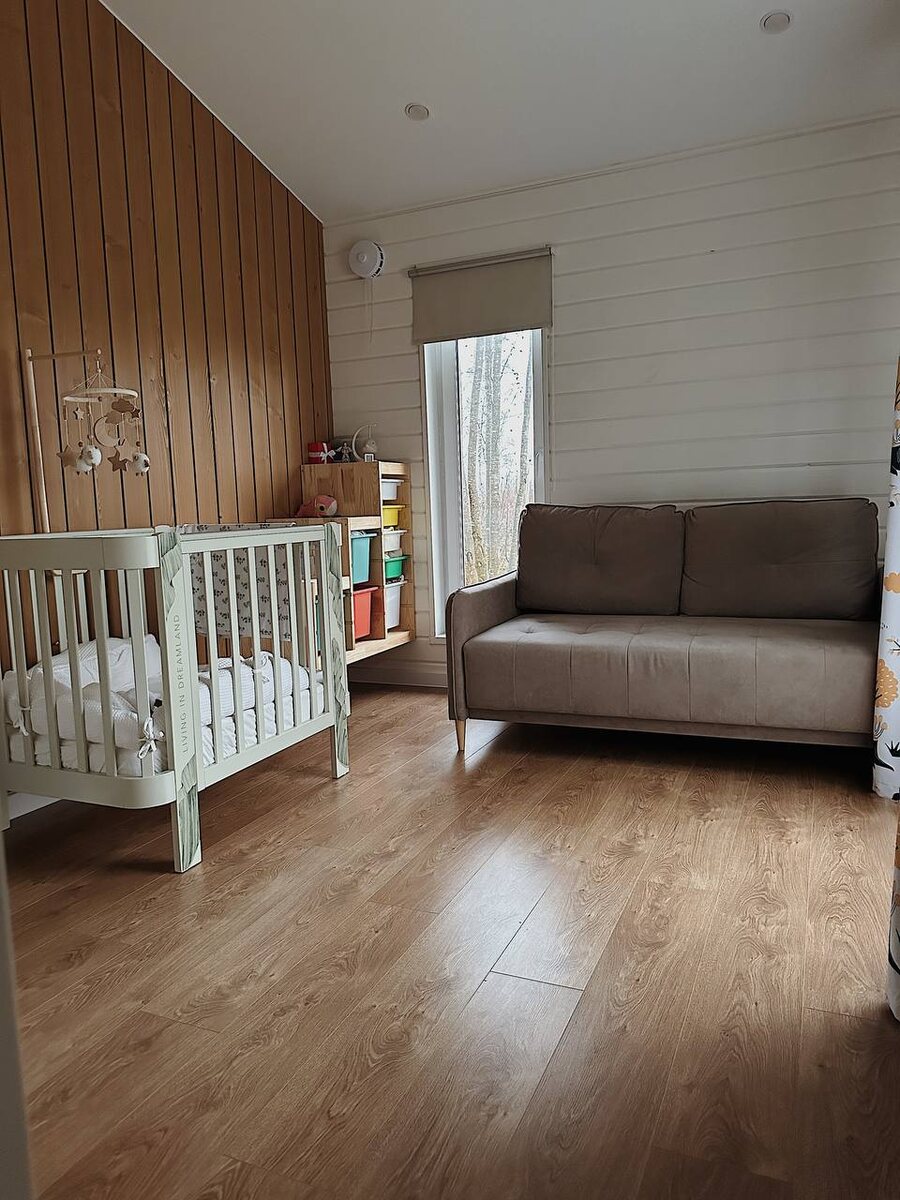 Начну, как обычно, с планирования. Как вы уже поняли, мы не большие фанаты забивания комнат разными тумбами, шкафами и прочим, поэтому в детской был такой же план: просто и функционально. Нам нужно было сделать так, чтобы в комнате были и зоны хранения, и зона сна + диван на случай приезда гостей. При этом оставалось место для того, чтобы с возрастом все переиграть, добавить детский стол, какие-то дополнительные зоны развлечений. Плюс ко всему, нужно понимать, что комната сама по себе не очень большая, около 10 кв.м. И ещё важный нюанс: всю мебель нам нужно было поставить на ножки или подвесить, так как по всей комнате, кроме центральной части, проходит контур теплого пола, а это значит, что если мебель стоит на своих гранях - пол начинает перегреваться в этих местах. Что было сделано: ✳️Для игрушек: деревянный стеллаж + контейнеры к нему. Все это было куплено в ОБИ, но, по сути, это все коллекция ТРУФАСТ из ИКЕА, на контейнерах даже штампы стоят. Просто, при этом ярко. Есть много кон