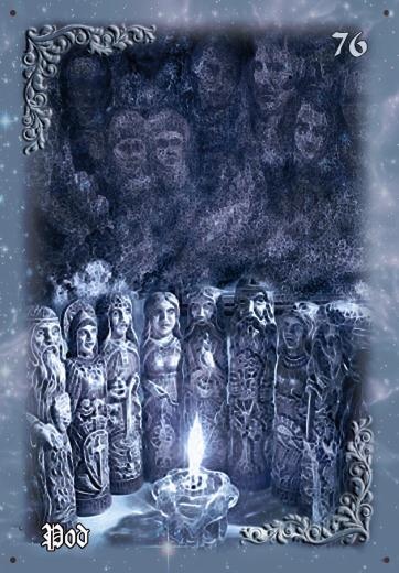 Карта «Род» символизирует семейные и родовые традиции, их важность для молодого поколения и стремление следовать указаниям старших в семье. Этот аркан может указывать на пожилого человека, который свято чтит семейные ценности и стремится сохранить их, передавая их всем своим родственникам, даже тем, кто живет далеко.