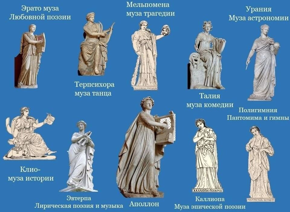 Вводные нашей задачи: в древнегреческой мифологии у Мнемозины, дочери Урана и Геи, и Зевса, бога неба и грома, родились девять дочерей, которые стали известны как Музы. Древние греки считали их богинями искусства и вдохновения, обитающими на горе Парнас.