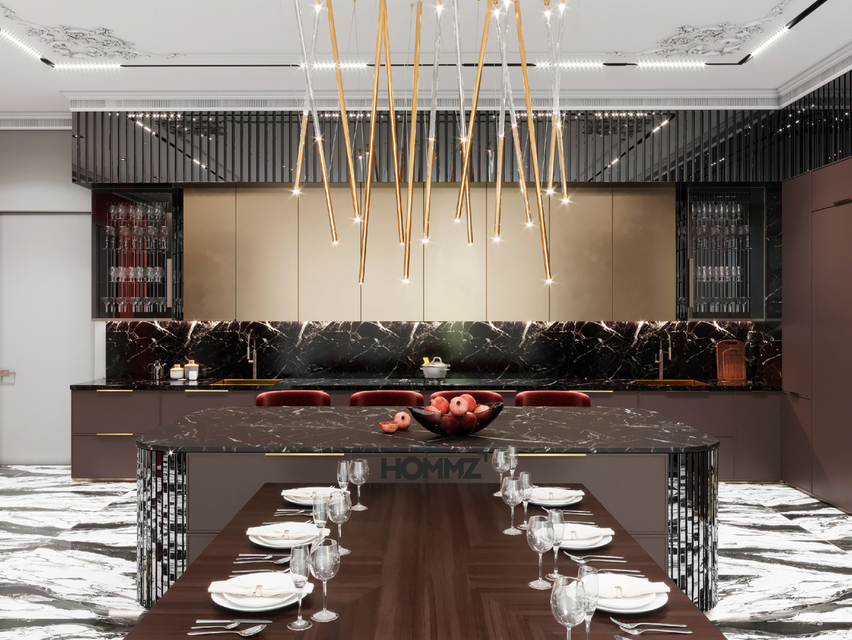В одном из проектов студии HOMMZ дизайнеры делали 3D ромбовидные фасады гарнитура - ювелирная работа, которая производит впечатление с первого взгляда, впрочем, как и вся мебель, сделанная на собственной фабрике HOMMZ. Такой гарнитур точно не выйдет из моды никогда!